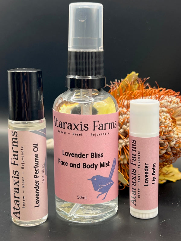 Explore our Lavender, Strawberry Gum and Bush Mint creations - grown, hand harvested and made by the Ataraxis Farms team.